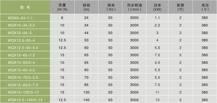 產(chǎn)品特點 1、采用獨特的單葉片或雙葉片葉輪結(jié)構(gòu),大大提高了污物通過能力。 2、整體結(jié)構(gòu)緊湊體積小、噪聲小、節(jié)能效果顯著、檢修方便,無需建泵房,潛入水中即可工作,大大減少工程造價。 3、可根據(jù)用戶需要配備全自動控制柜,對泵的漏水、漏電、過載及超溫等進行自動保護,提高了產(chǎn)品安全可靠性。 4、浮球開關(guān)可以根據(jù)所需液位變化,自動控制泵的啟動停止,不需專人看管,使用極為方便。 5、WQX系列可根據(jù)用戶需要配備雙導(dǎo)軌自動耦合安裝系統(tǒng),它給安裝、維修帶來更大方便,人可不必為此而進入污水坑。 6、有兩種不同的安裝方式,固定式自動耦合安裝系統(tǒng)、移動式自由安裝系統(tǒng)。